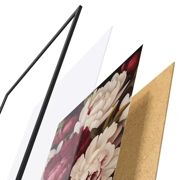 Plakát se skládá z rámu, plexiskla, tištěného obrazu a dřevotřískového podkladu. Díky úchytům na zadní straně lze plakát ihned zavěsit na zeď.