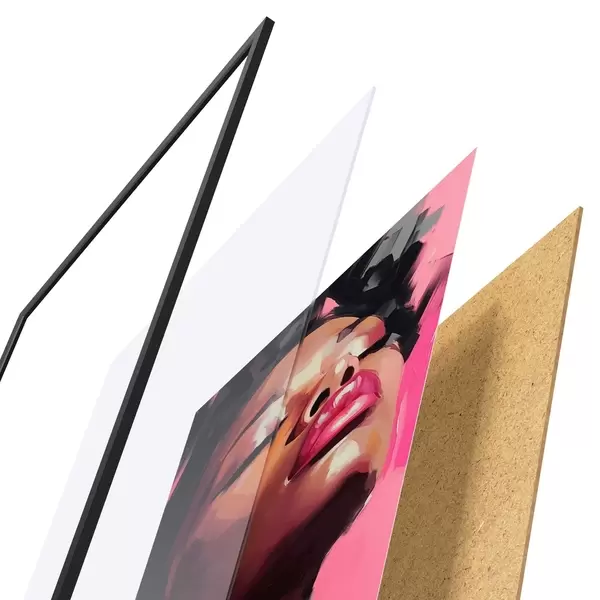 Plakát se skládá z rámu, plexiskla, tištěného obrazu a dřevotřískového podkladu. Díky úchytům na zadní straně lze plakát ihned zavěsit na zeď.