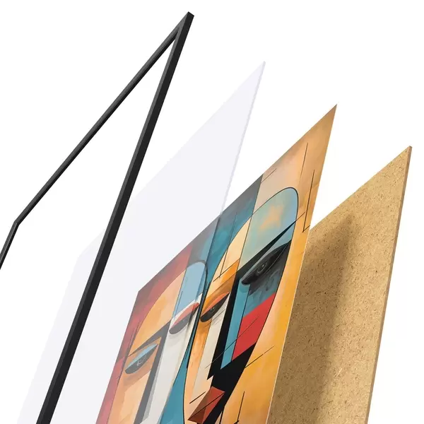 Plakát se skládá z rámu, plexiskla, tištěného obrazu a dřevotřískového podkladu. Díky úchytům na zadní straně lze plakát ihned zavěsit na zeď.