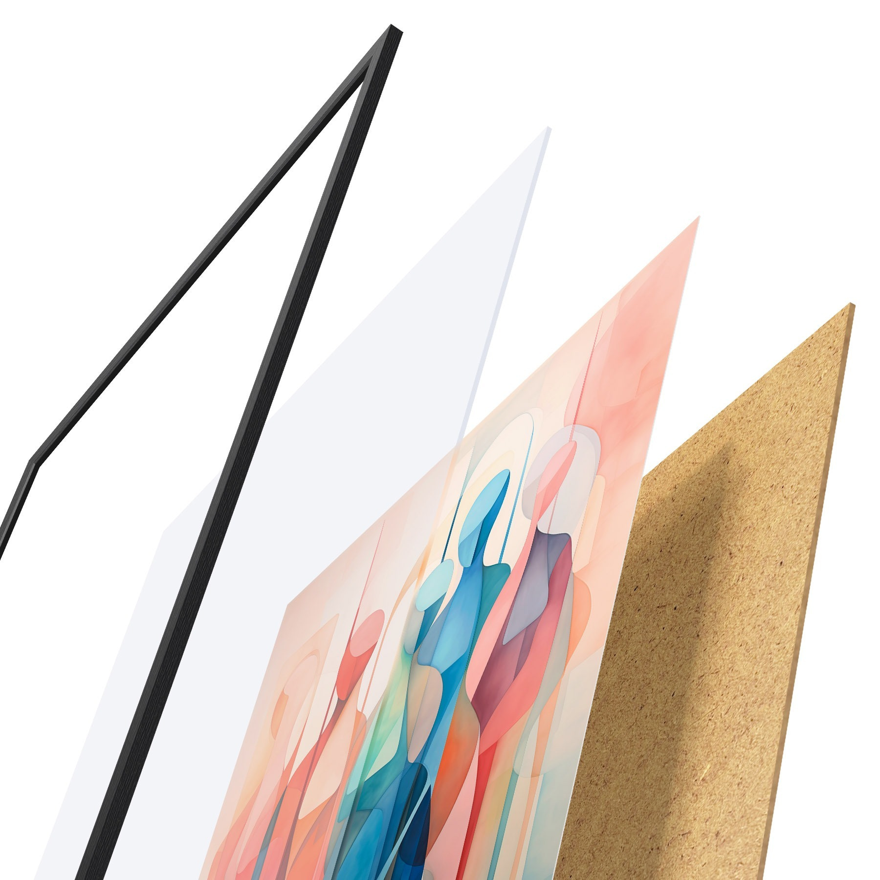 Plakát se skládá z rámu, plexiskla, tištěného obrazu a dřevotřískového podkladu. Díky úchytům na zadní straně lze plakát ihned zavěsit na zeď.