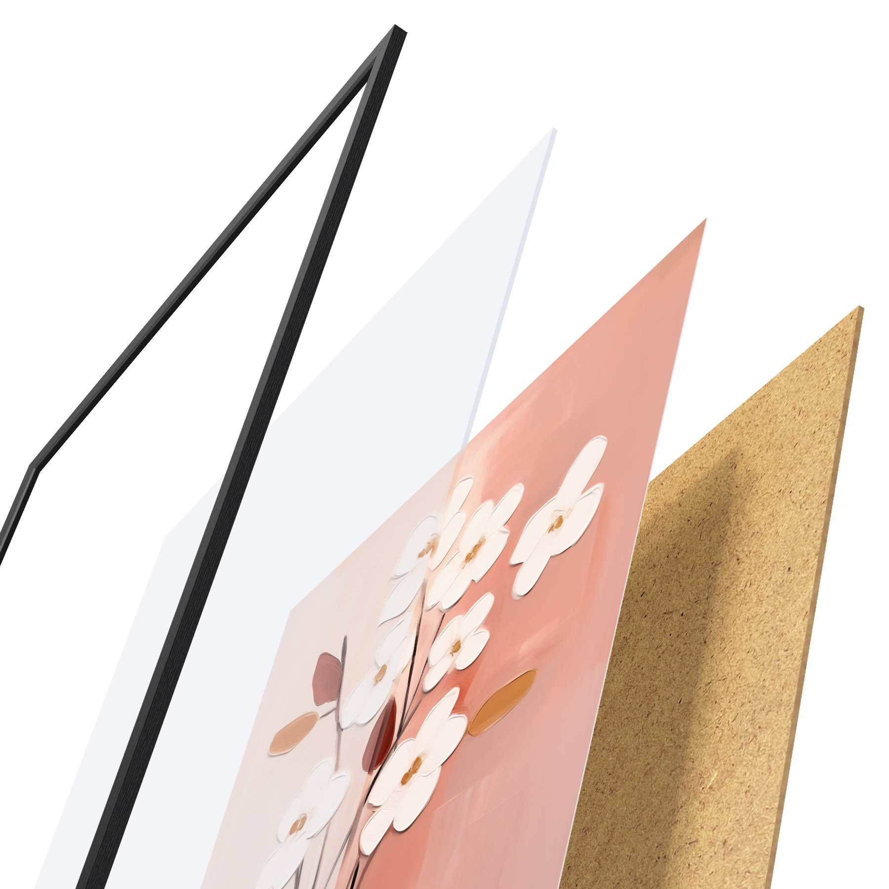 Plakát se skládá z rámu, plexiskla, tištěného obrazu a dřevotřískového podkladu. Díky úchytům na zadní straně lze plakát ihned zavěsit na zeď.