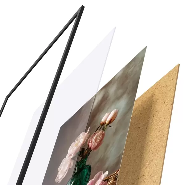 Plakát se skládá z rámu, plexiskla, tištěného obrazu a dřevotřískového podkladu. Díky úchytům na zadní straně lze plakát ihned zavěsit na zeď.