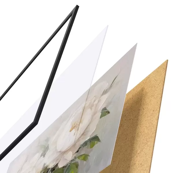 Plakát se skládá z rámu, plexiskla, tištěného obrazu a dřevotřískového podkladu. Díky úchytům na zadní straně lze plakát ihned zavěsit na zeď.