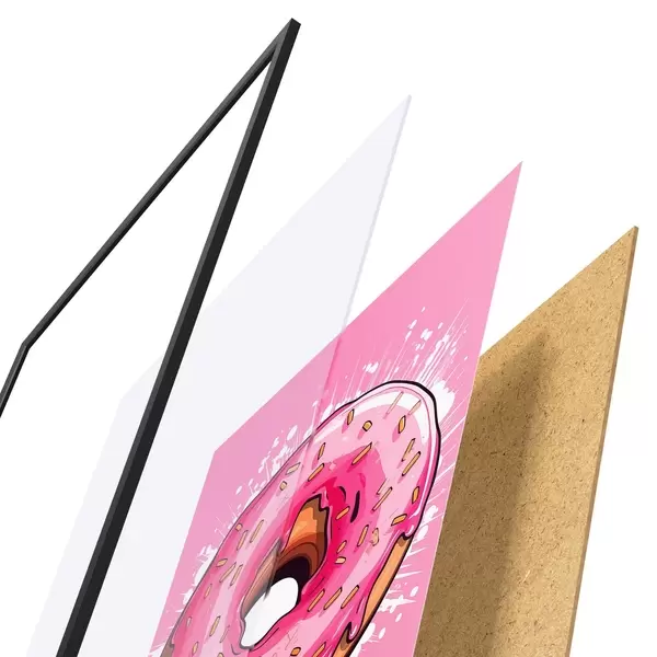 Plakát se skládá z rámu, plexiskla, tištěného obrazu a dřevotřískového podkladu. Díky úchytům na zadní straně lze plakát ihned zavěsit na zeď.