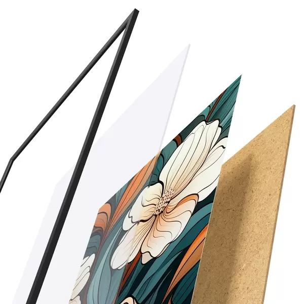 Plakát se skládá z rámu, plexiskla, tištěného obrazu a dřevotřískového podkladu. Díky úchytům na zadní straně lze plakát ihned zavěsit na zeď.