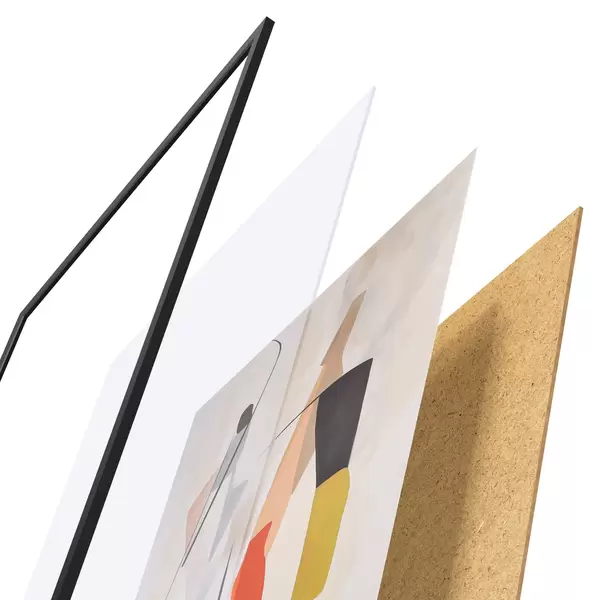 Plakát se skládá z rámu, plexiskla, tištěného obrazu a dřevotřískového podkladu. Díky úchytům na zadní straně lze plakát ihned zavěsit na zeď.