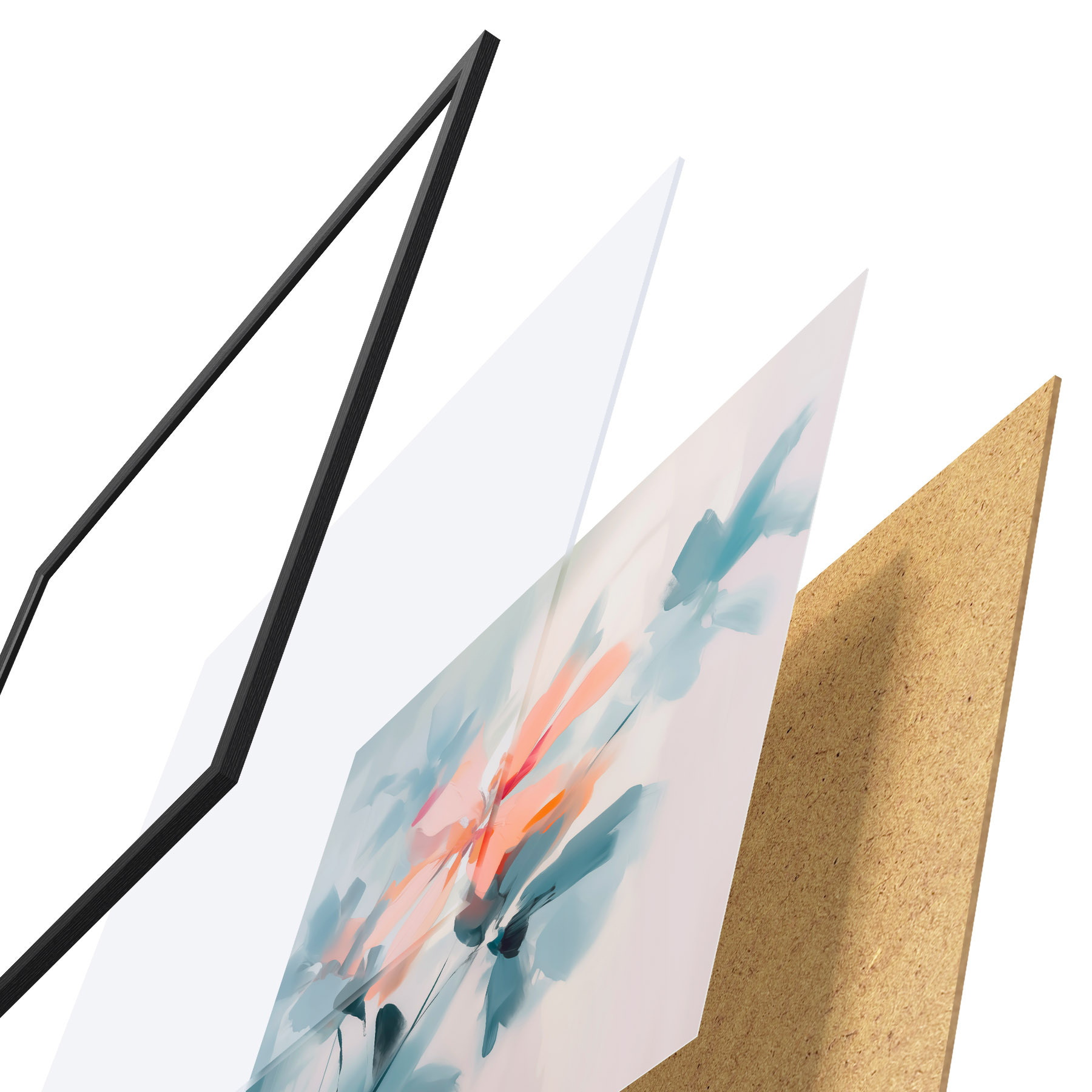 Plakát se skládá z rámu, plexiskla, tištěného obrazu a dřevotřískového podkladu. Díky úchytům na zadní straně lze plakát ihned zavěsit na zeď.