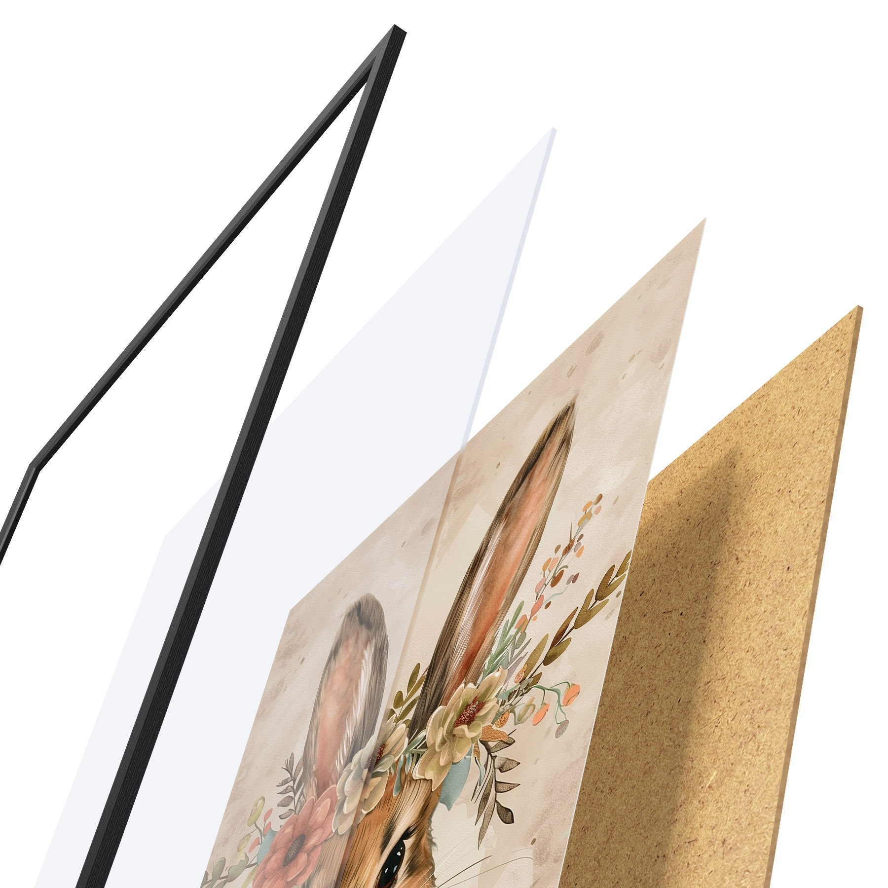 Plakát se skládá z rámu, plexiskla, tištěného obrazu a dřevotřískového podkladu. Díky úchytům na zadní straně lze plakát ihned zavěsit na zeď.