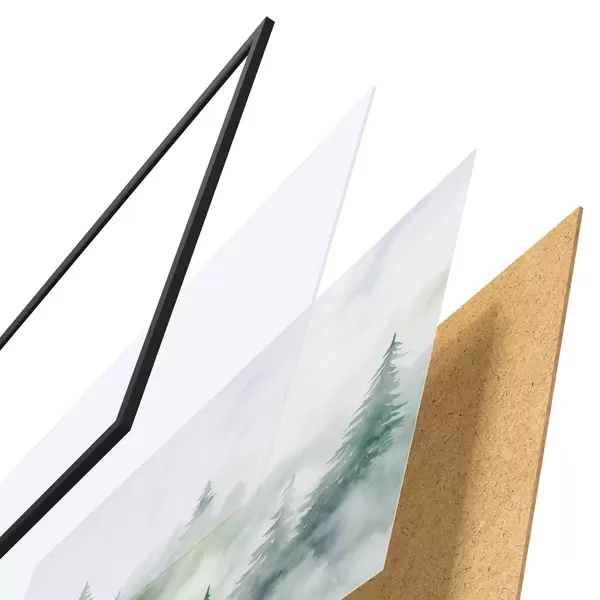 Plakát se skládá z rámu, plexiskla, tištěného obrazu a dřevotřískového podkladu. Díky úchytům na zadní straně lze plakát ihned zavěsit na zeď.