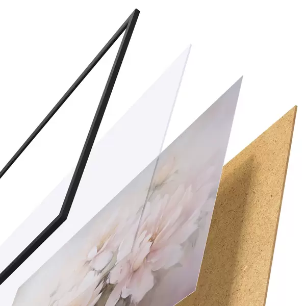 Plakát se skládá z rámu, plexiskla, tištěného obrazu a dřevotřískového podkladu. Díky úchytům na zadní straně lze plakát ihned zavěsit na zeď.
