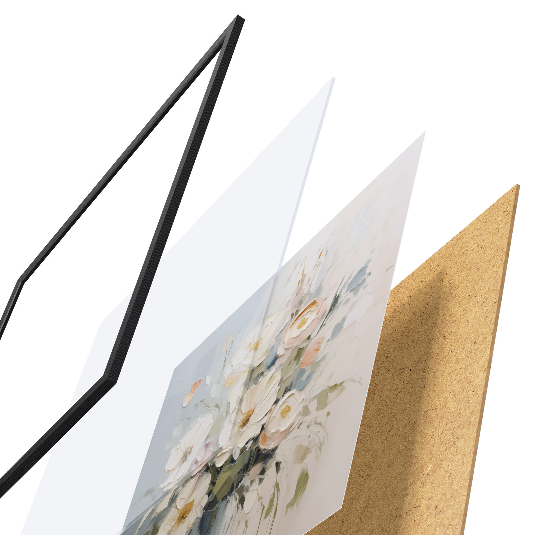 Plakát se skládá z rámu, plexiskla, tištěného obrazu a dřevotřískového podkladu. Díky úchytům na zadní straně lze plakát ihned zavěsit na zeď.