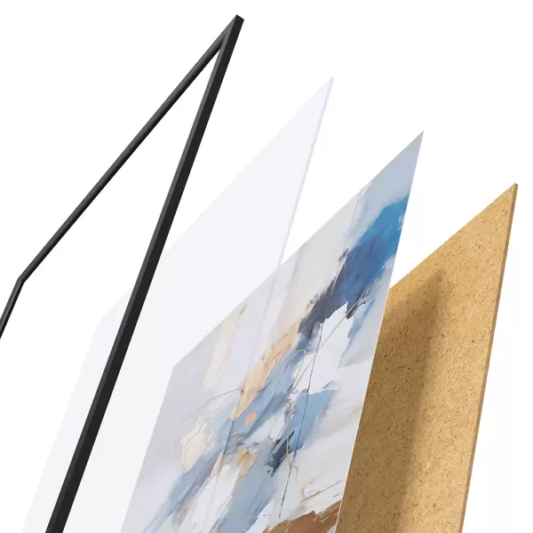 Plakát se skládá z rámu, plexiskla, tištěného obrazu a dřevotřískového podkladu. Díky úchytům na zadní straně lze plakát ihned zavěsit na zeď.