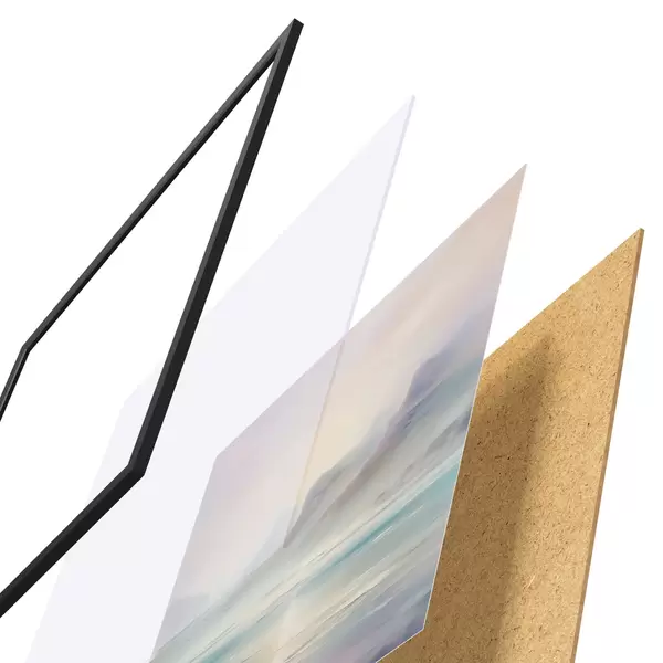 Plakát se skládá z rámu, plexiskla, tištěného obrazu a dřevotřískového podkladu. Díky úchytům na zadní straně lze plakát ihned zavěsit na zeď.