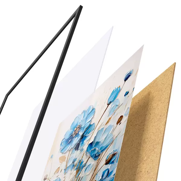 Plakát se skládá z rámu, plexiskla, tištěného obrazu a dřevotřískového podkladu. Díky úchytům na zadní straně lze plakát ihned zavěsit na zeď.