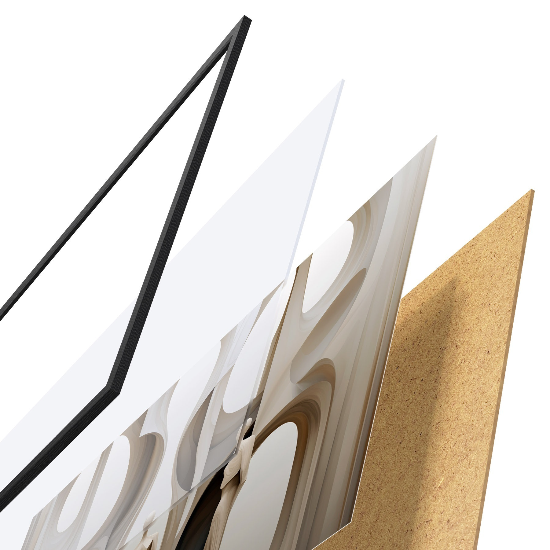 Plakát se skládá z rámu, plexiskla, tištěného obrazu a dřevotřískového podkladu. Díky úchytům na zadní straně lze plakát ihned zavěsit na zeď.