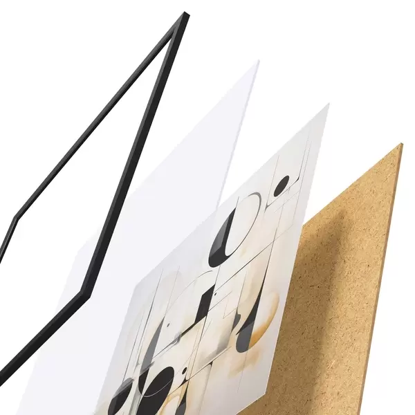 Plakát se skládá z rámu, plexiskla, tištěného obrazu a dřevotřískového podkladu. Díky úchytům na zadní straně lze plakát ihned zavěsit na zeď.