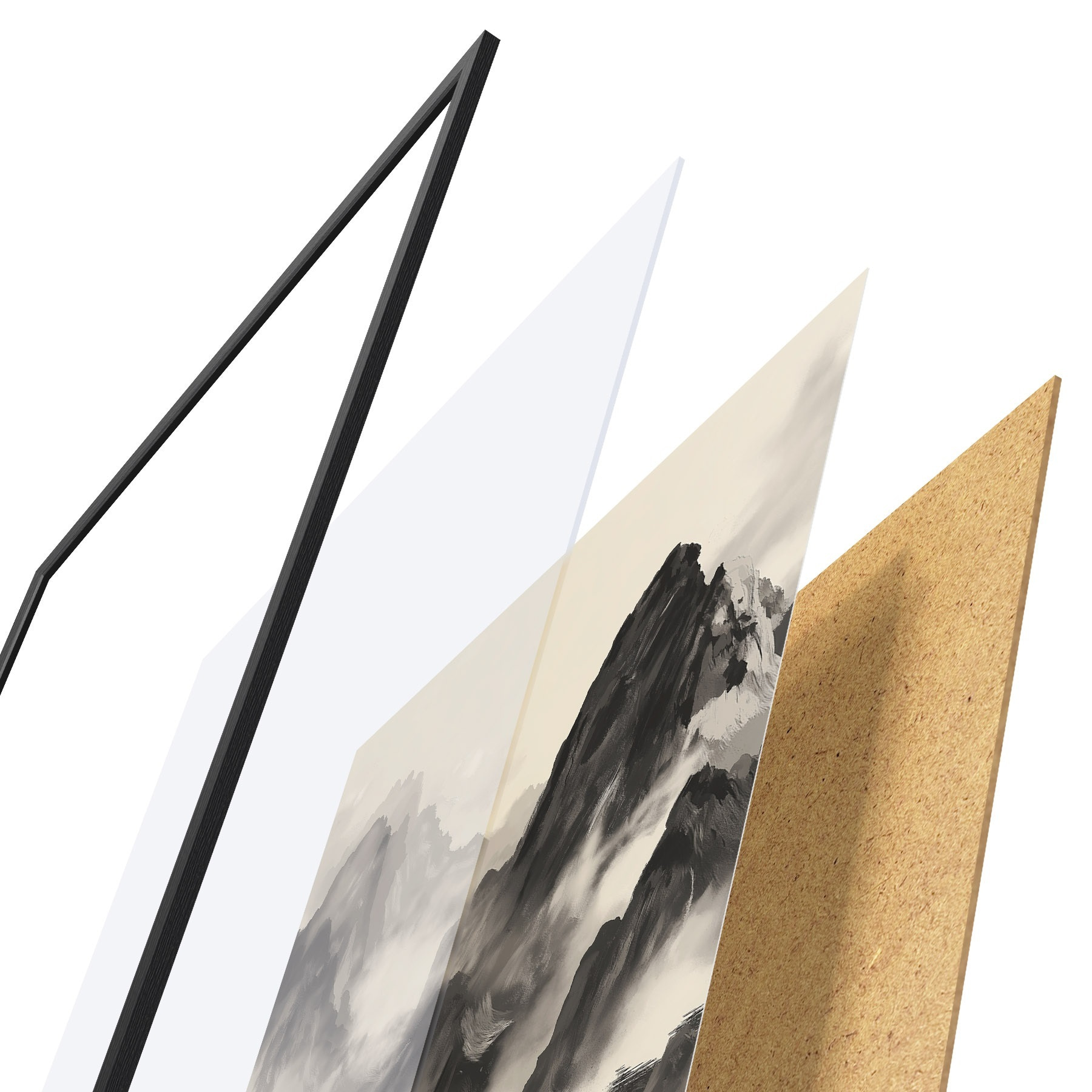 Plakát se skládá z rámu, plexiskla, tištěného obrazu a dřevotřískového podkladu. Díky úchytům na zadní straně lze plakát ihned zavěsit na zeď.