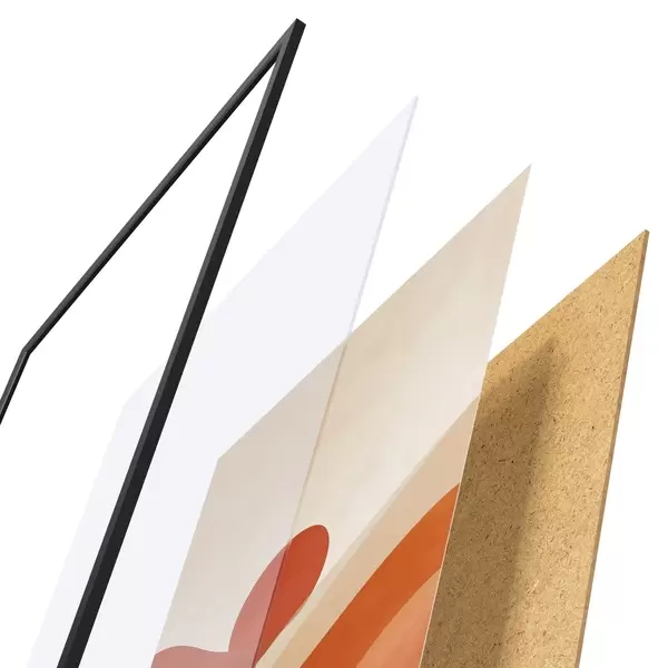 Plakát se skládá z rámu, plexiskla, tištěného obrazu a dřevotřískového podkladu. Díky úchytům na zadní straně lze plakát ihned zavěsit na zeď.