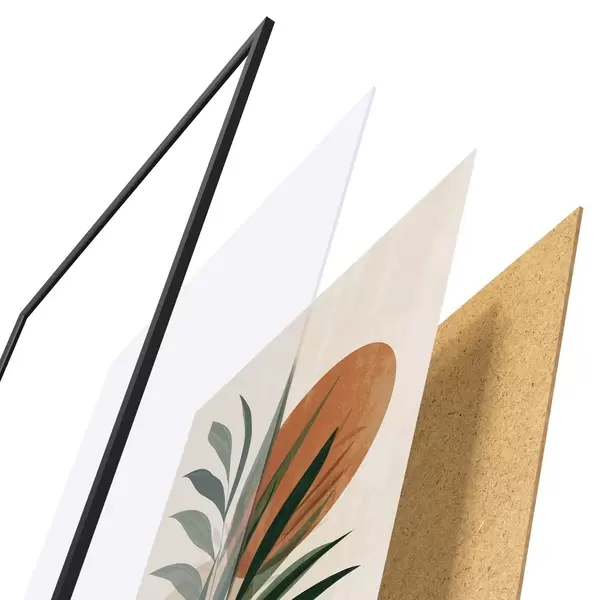 Plakát se skládá z rámu, plexiskla, tištěného obrazu a dřevotřískového podkladu. Díky úchytům na zadní straně lze plakát ihned zavěsit na zeď.