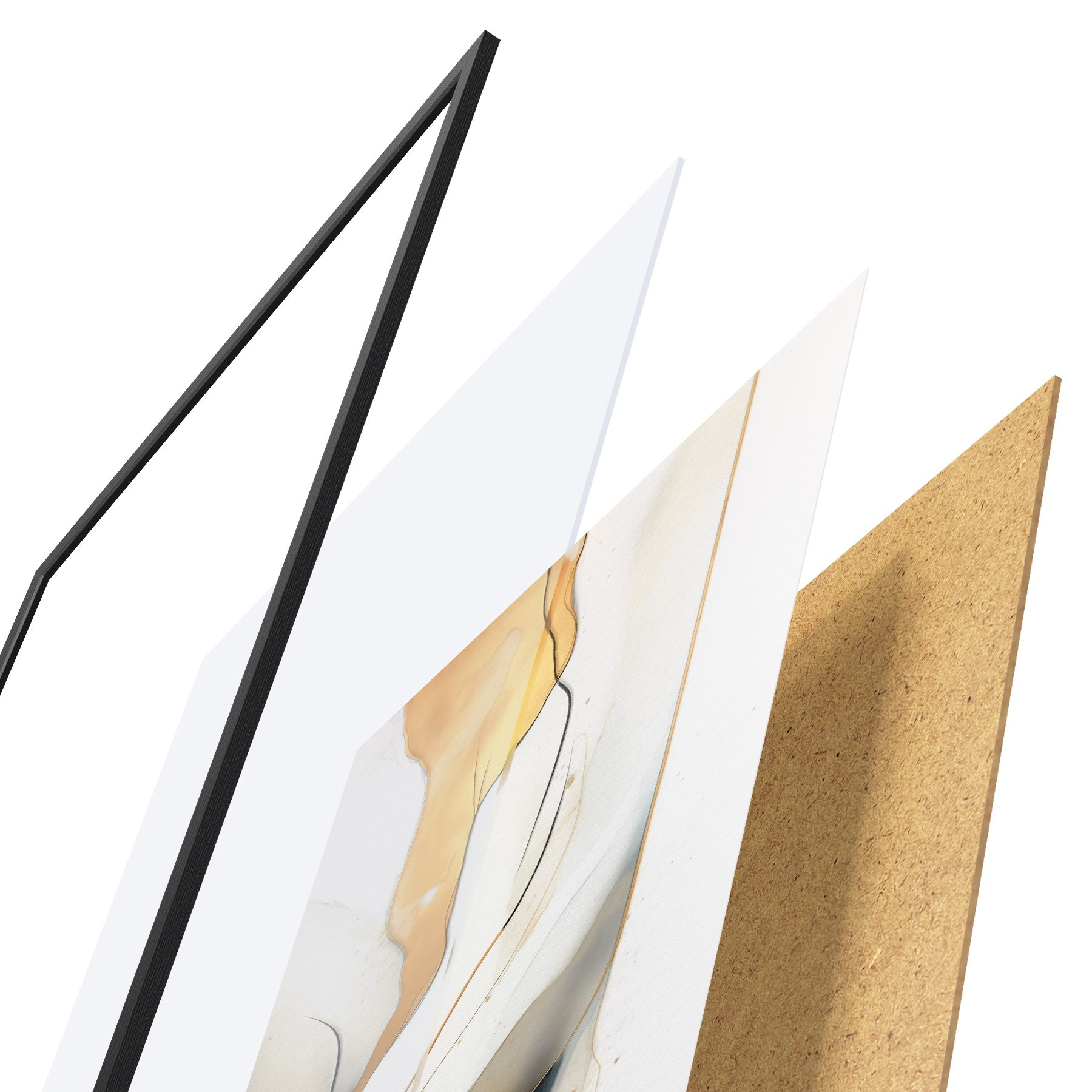 Plakát se skládá z rámu, plexiskla, tištěného obrazu a dřevotřískového podkladu. Díky úchytům na zadní straně lze plakát ihned zavěsit na zeď.