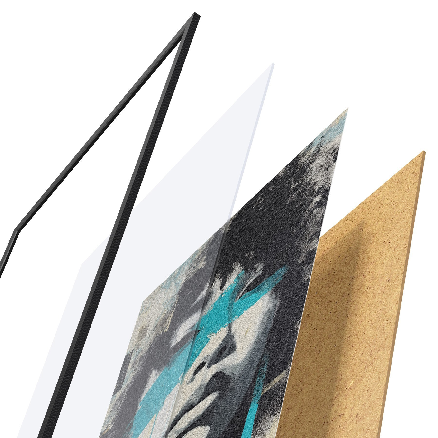Plakát se skládá z rámu, plexiskla, tištěného obrazu a dřevotřískového podkladu. Díky úchytům na zadní straně lze plakát ihned zavěsit na zeď.