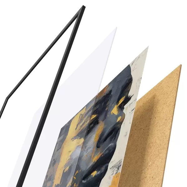Plakát se skládá z rámu, plexiskla, tištěného obrazu a dřevotřískového podkladu. Díky úchytům na zadní straně lze plakát ihned zavěsit na zeď.