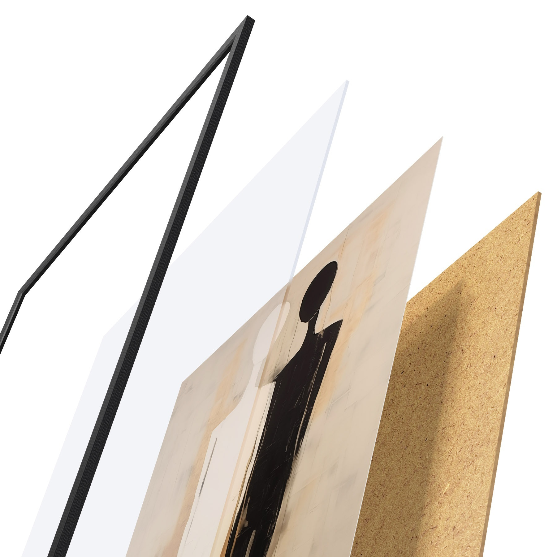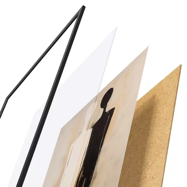 Plakát se skládá z rámu, plexiskla, tištěného obrazu a dřevotřískového podkladu. Díky úchytům na zadní straně lze plakát ihned zavěsit na zeď.