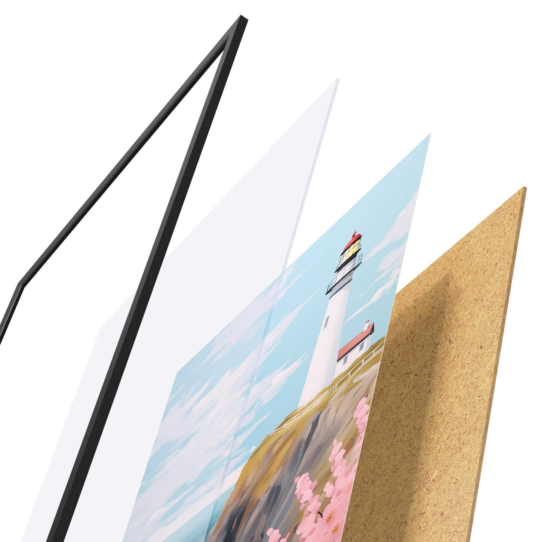 Plakát se skládá z rámu, plexiskla, tištěného obrazu a dřevotřískového podkladu. Díky úchytům na zadní straně lze plakát ihned zavěsit na zeď.