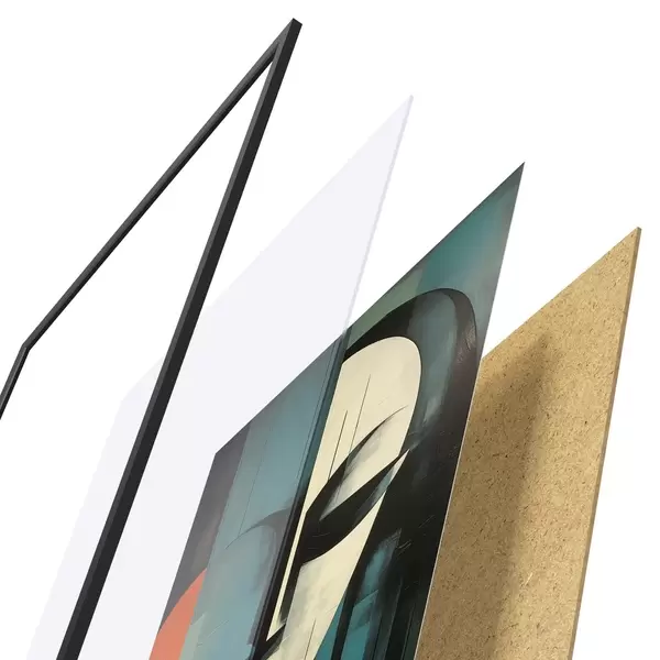 Plakát se skládá z rámu, plexiskla, tištěného obrazu a dřevotřískového podkladu. Díky úchytům na zadní straně lze plakát ihned zavěsit na zeď.