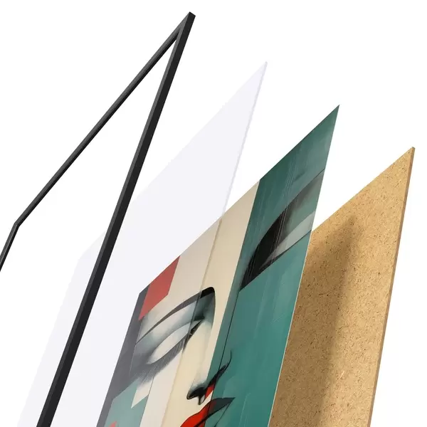 Plakát se skládá z rámu, plexiskla, tištěného obrazu a dřevotřískového podkladu. Díky úchytům na zadní straně lze plakát ihned zavěsit na zeď.