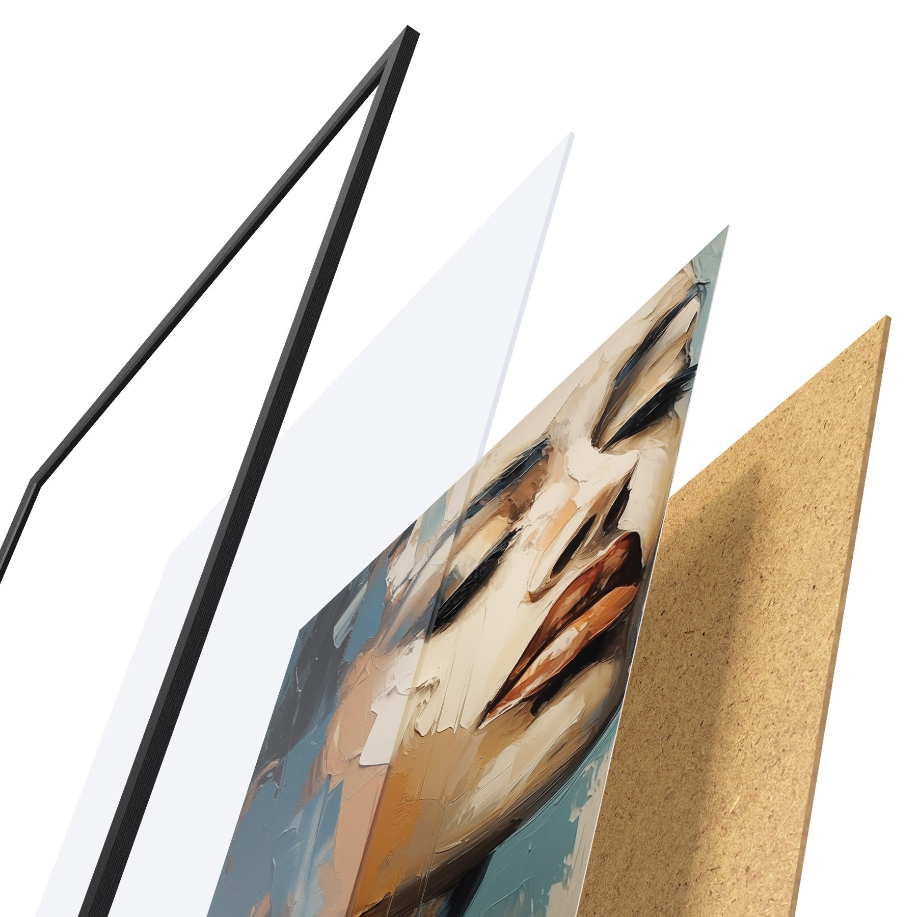 Plakát se skládá z rámu, plexiskla, tištěného obrazu a dřevotřískového podkladu. Díky úchytům na zadní straně lze plakát ihned zavěsit na zeď.