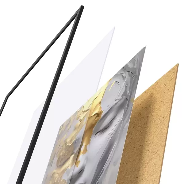 Plakát se skládá z rámu, plexiskla, tištěného obrazu a dřevotřískového podkladu. Díky úchytům na zadní straně lze plakát ihned zavěsit na zeď.