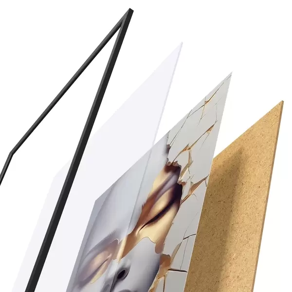 Plakát se skládá z rámu, plexiskla, tištěného obrazu a dřevotřískového podkladu. Díky úchytům na zadní straně lze plakát ihned zavěsit na zeď.