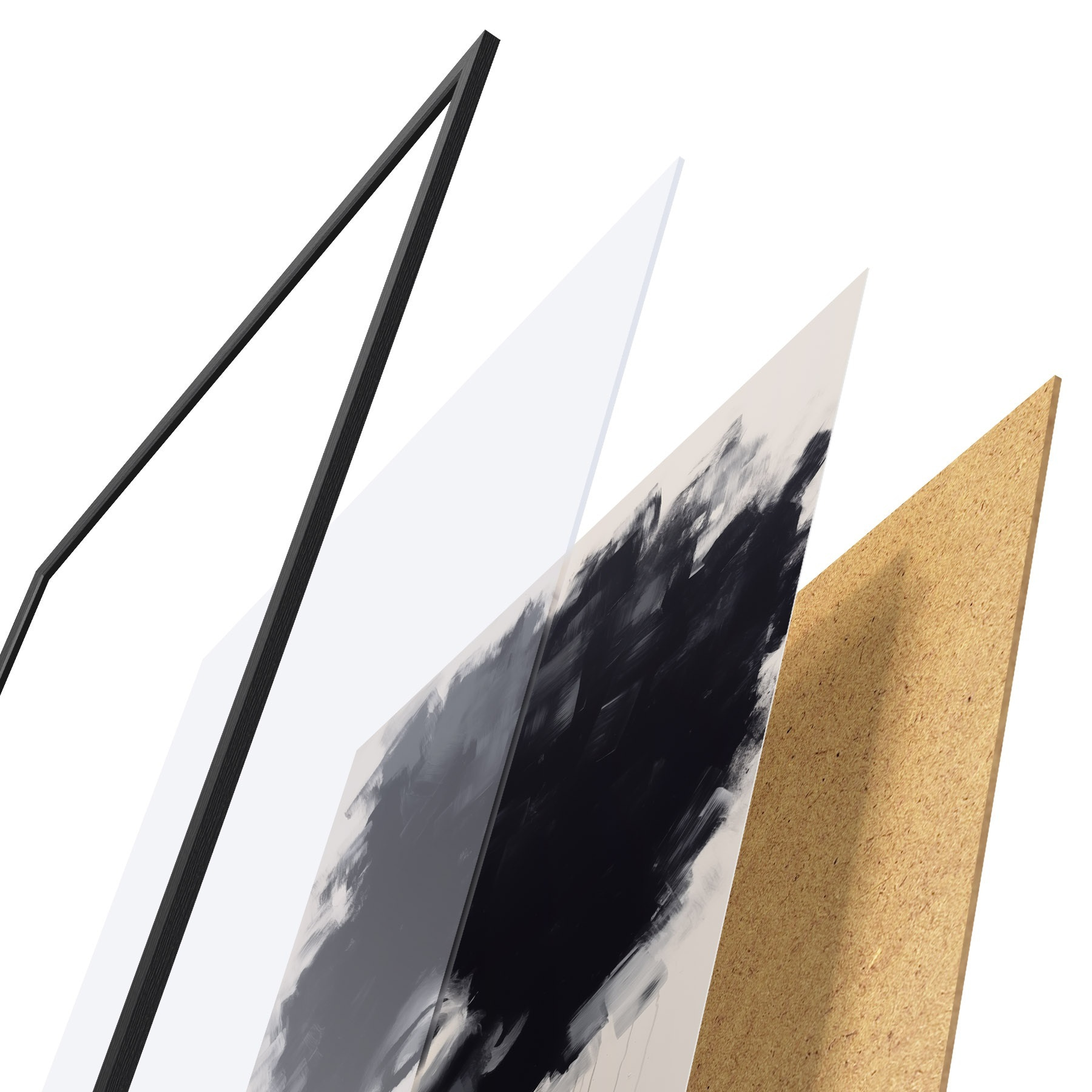 Plakát se skládá z rámu, plexiskla, tištěného obrazu a dřevotřískového podkladu. Díky úchytům na zadní straně lze plakát ihned zavěsit na zeď.