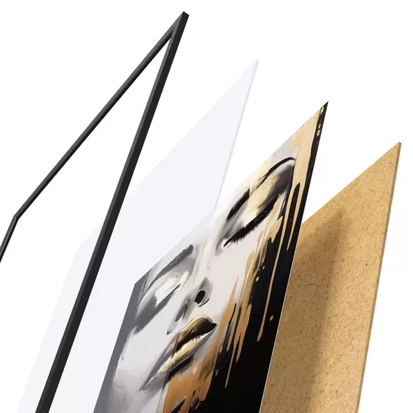 Plakát se skládá z rámu, plexiskla, tištěného obrazu a dřevotřískového podkladu. Díky úchytům na zadní straně lze plakát ihned zavěsit na zeď.