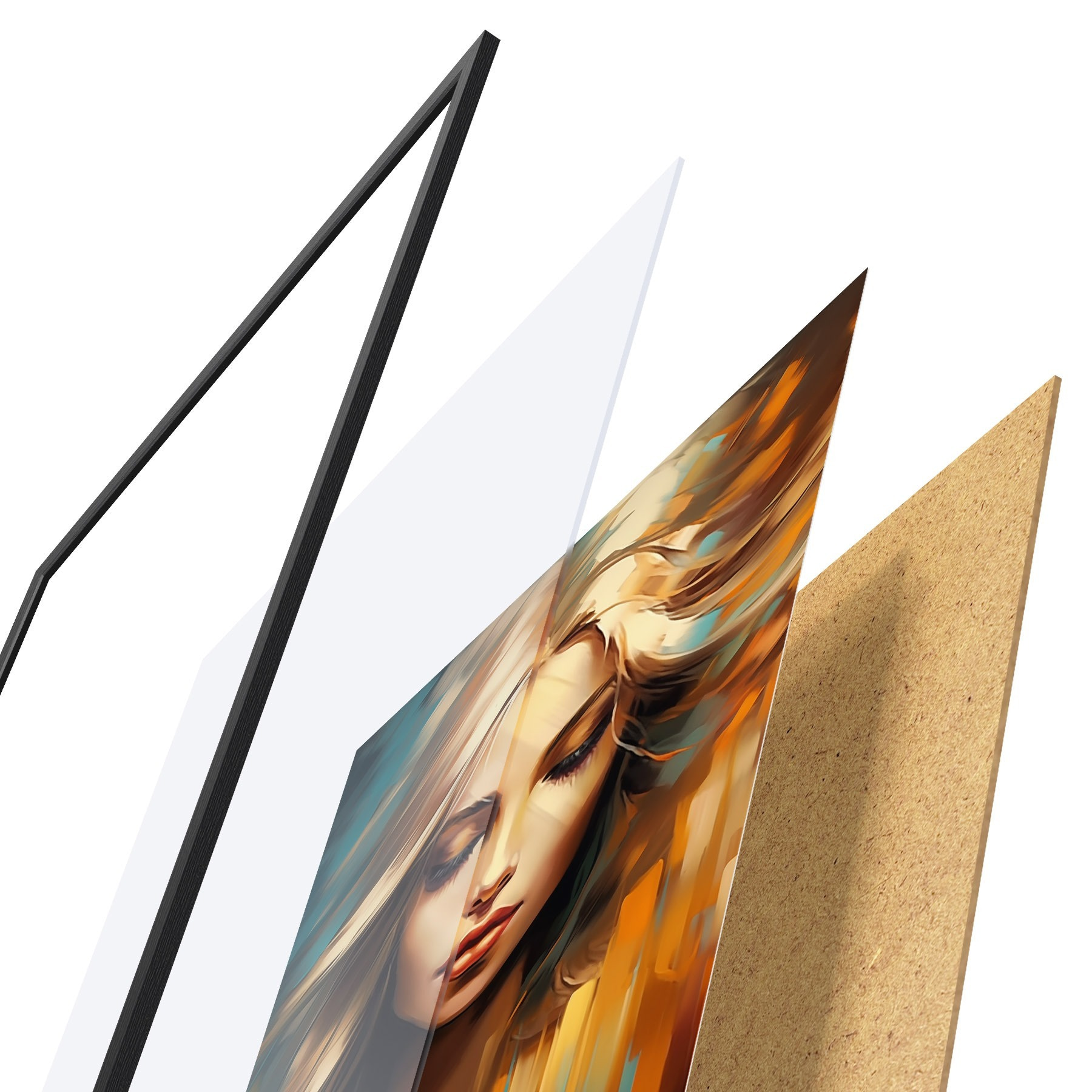 Plakát se skládá z rámu, plexiskla, tištěného obrazu a dřevotřískového podkladu. Díky úchytům na zadní straně lze plakát ihned zavěsit na zeď.