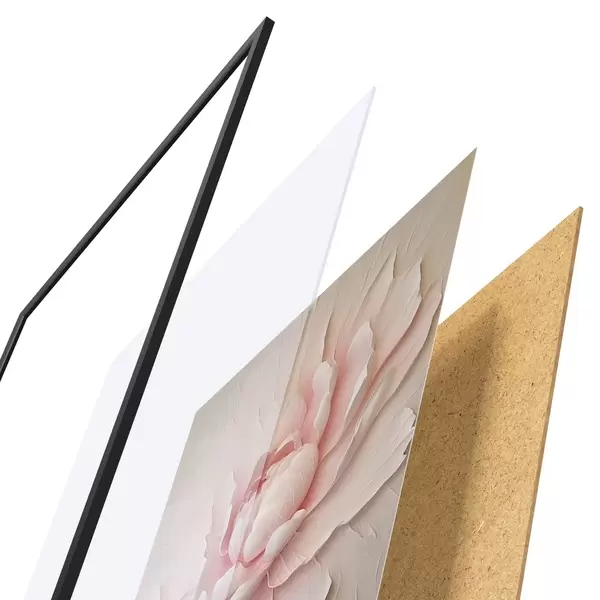 Plakát se skládá z rámu, plexiskla, tištěného obrazu a dřevotřískového podkladu. Díky úchytům na zadní straně lze plakát ihned zavěsit na zeď.