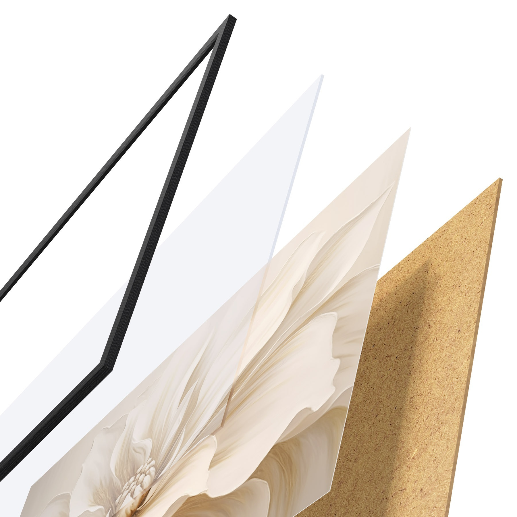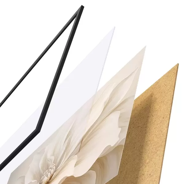 Plakát se skládá z rámu, plexiskla, tištěného obrazu a dřevotřískového podkladu. Díky úchytům na zadní straně lze plakát ihned zavěsit na zeď.