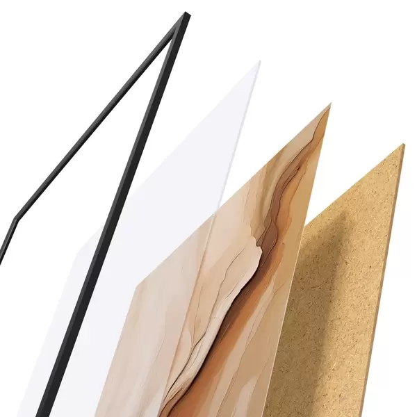 Plakát se skládá z rámu, plexiskla, tištěného obrazu a dřevotřískového podkladu. Díky úchytům na zadní straně lze plakát ihned zavěsit na zeď.