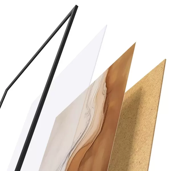 Plakát se skládá z rámu, plexiskla, tištěného obrazu a dřevotřískového podkladu. Díky úchytům na zadní straně lze plakát ihned zavěsit na zeď.
