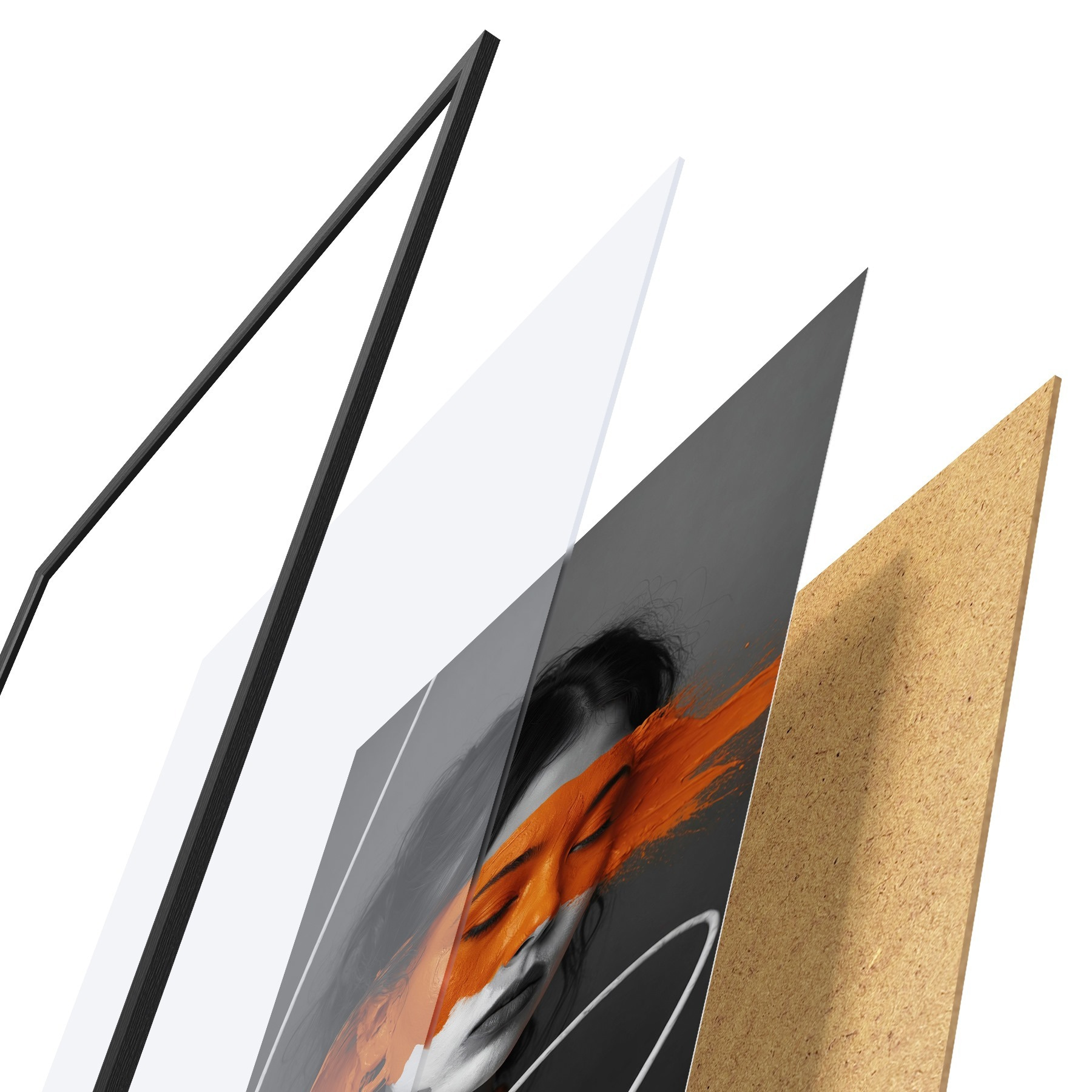 Plakát se skládá z rámu, plexiskla, tištěného obrazu a dřevotřískového podkladu. Díky úchytům na zadní straně lze plakát ihned zavěsit na zeď.