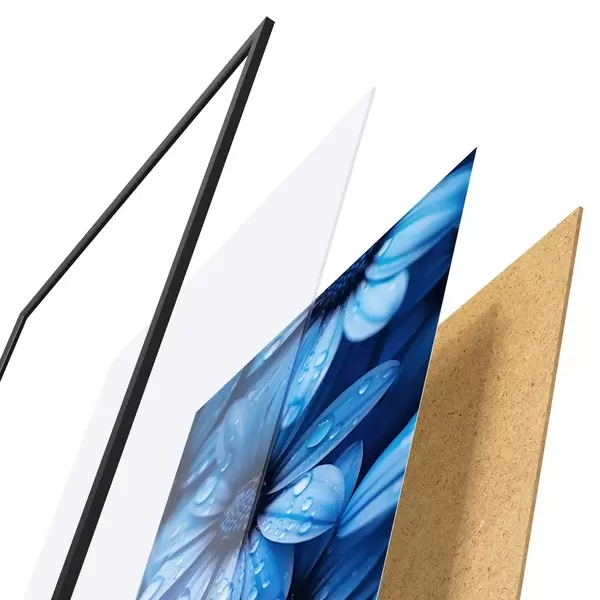 Plakát se skládá z rámu, plexiskla, tištěného obrazu a dřevotřískového podkladu. Díky úchytům na zadní straně lze plakát ihned zavěsit na zeď.