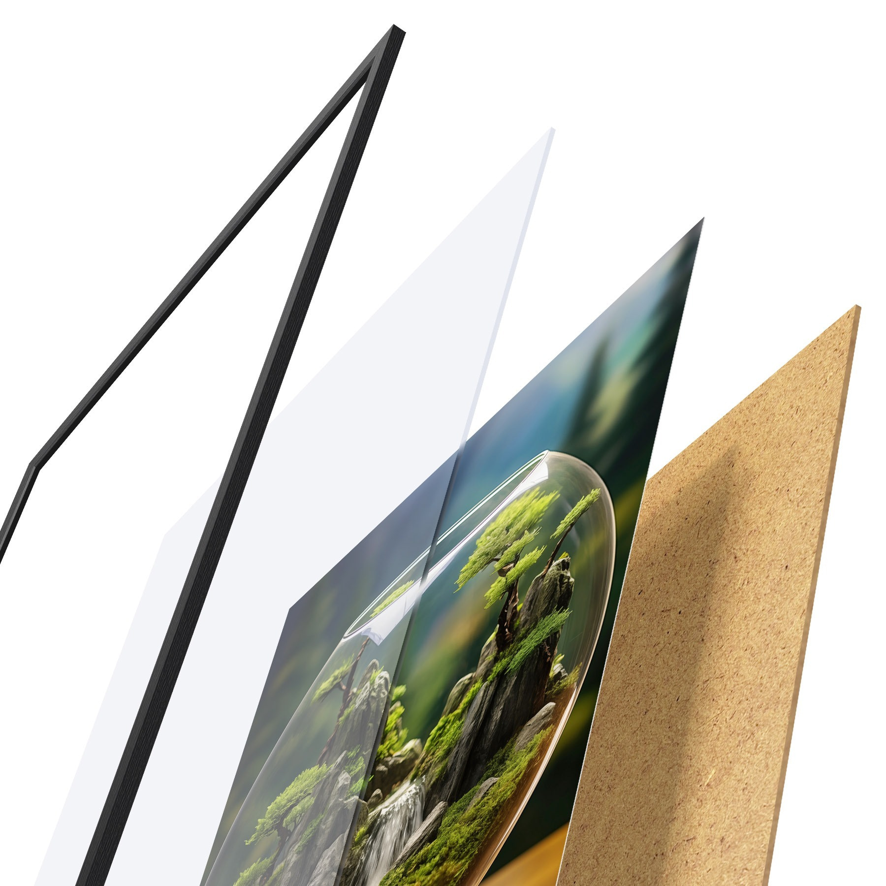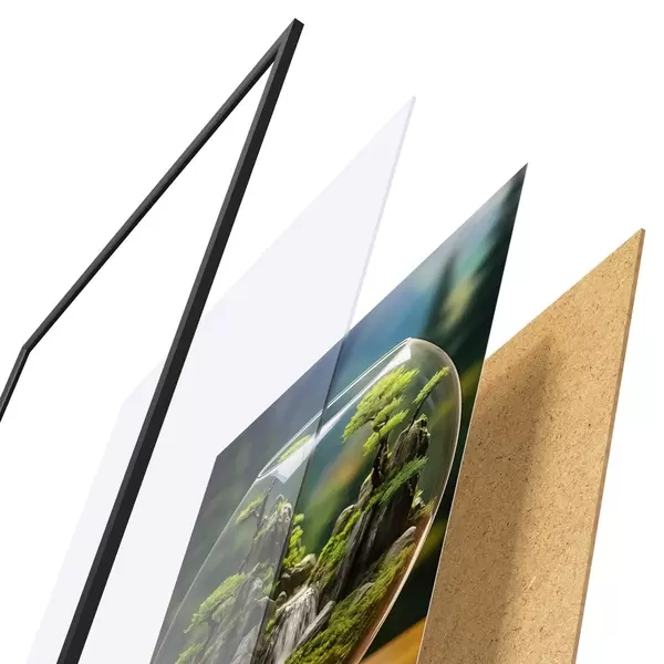 Plakát se skládá z rámu, plexiskla, tištěného obrazu a dřevotřískového podkladu. Díky úchytům na zadní straně lze plakát ihned zavěsit na zeď.