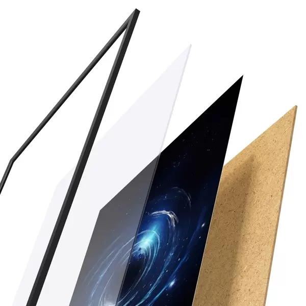 Plakát se skládá z rámu, plexiskla, tištěného obrazu a dřevotřískového podkladu. Díky úchytům na zadní straně lze plakát ihned zavěsit na zeď.