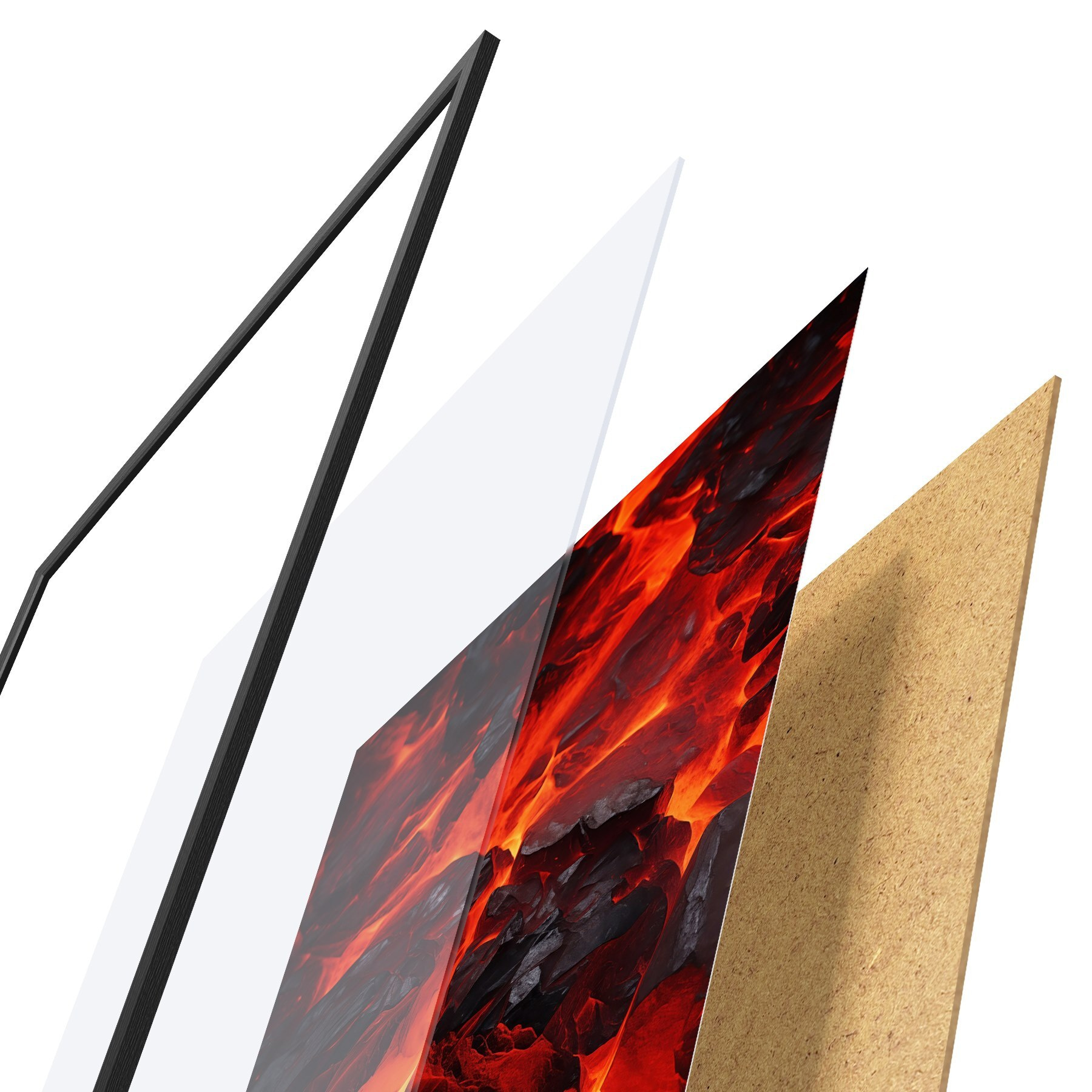 Plakát se skládá z rámu, plexiskla, tištěného obrazu a dřevotřískového podkladu. Díky úchytům na zadní straně lze plakát ihned zavěsit na zeď.