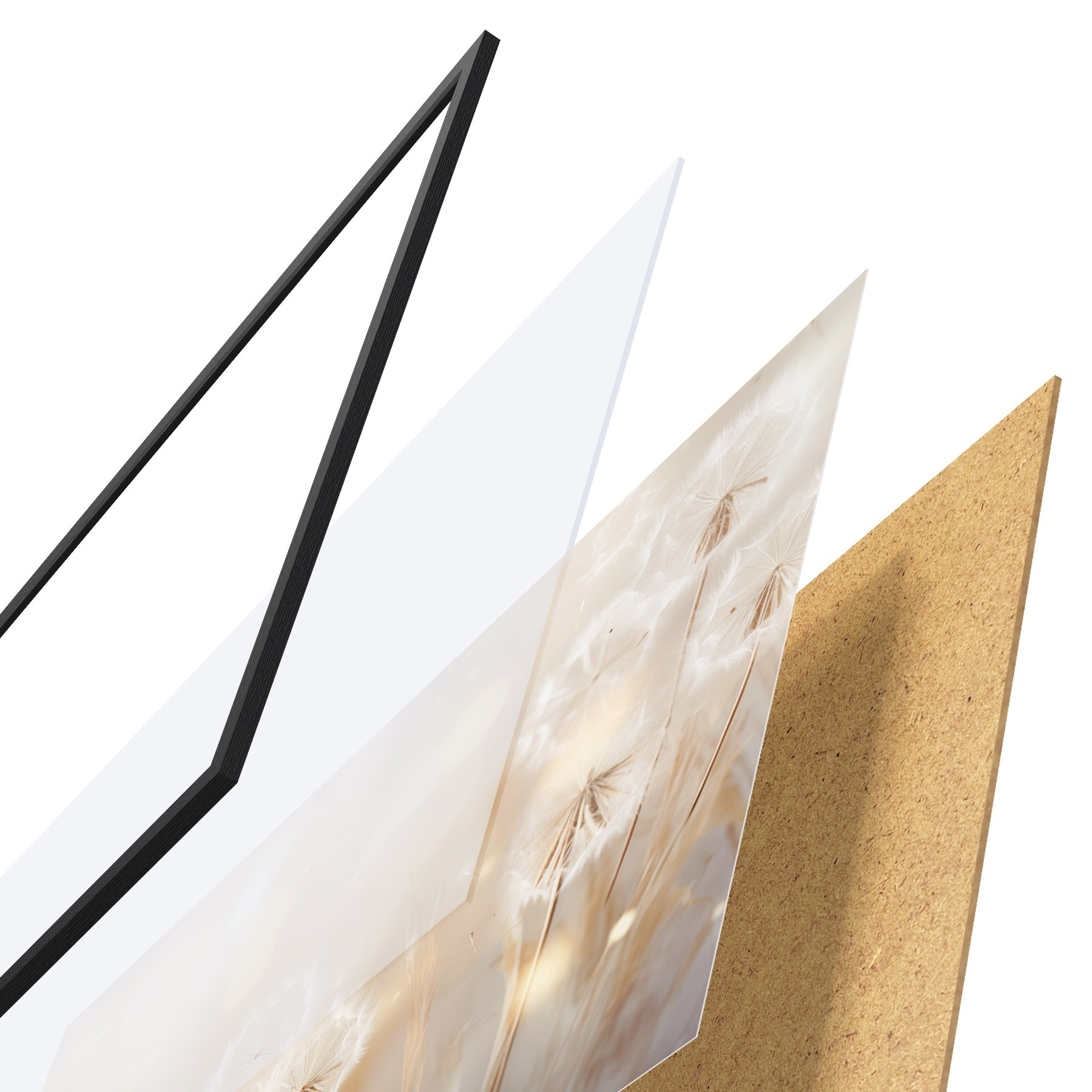 Plakát se skládá z rámu, plexiskla, tištěného obrazu a dřevotřískového podkladu. Díky úchytům na zadní straně lze plakát ihned zavěsit na zeď.