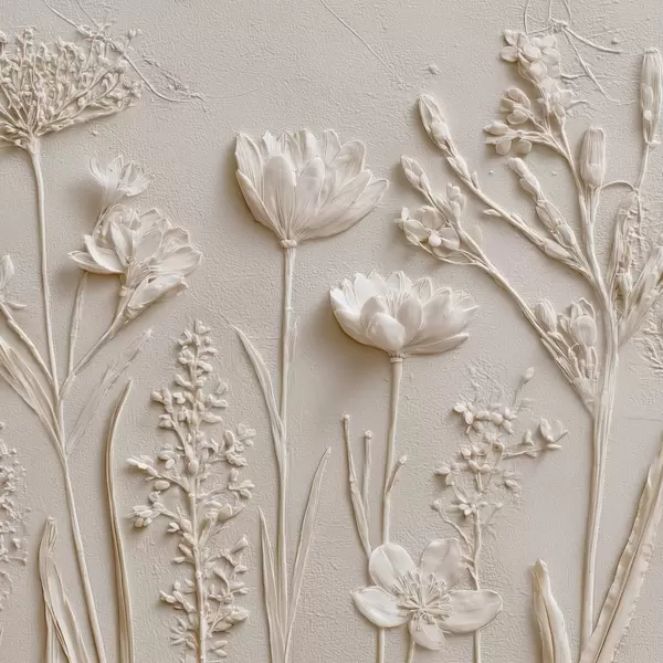 Poster Abstraktní kompozice: basreliéf s květinami na světlém pozadí Č. f45535