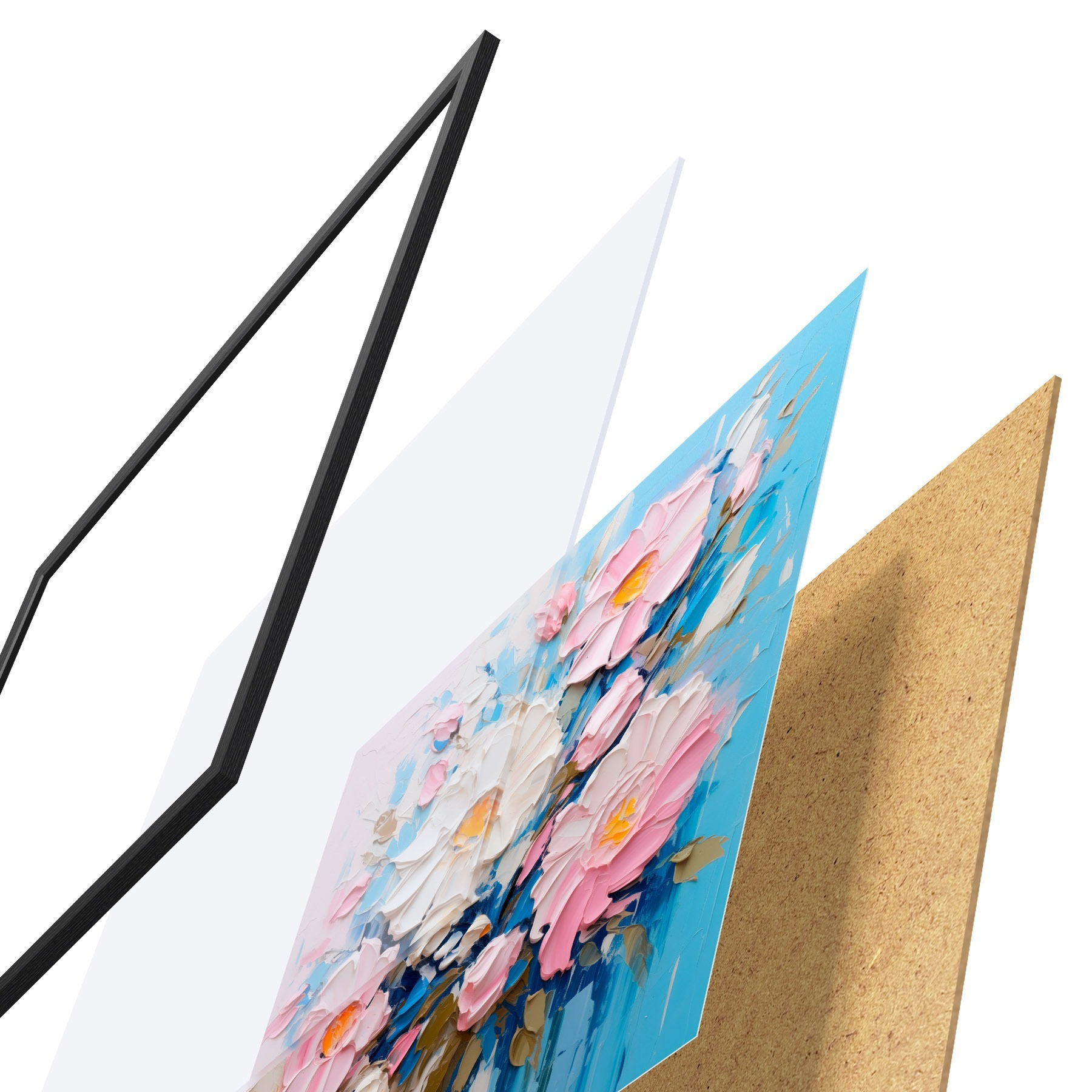 Plakát se skládá z rámu, plexiskla, tištěného obrazu a dřevotřískového podkladu. Díky úchytům na zadní straně lze plakát ihned zavěsit na zeď.