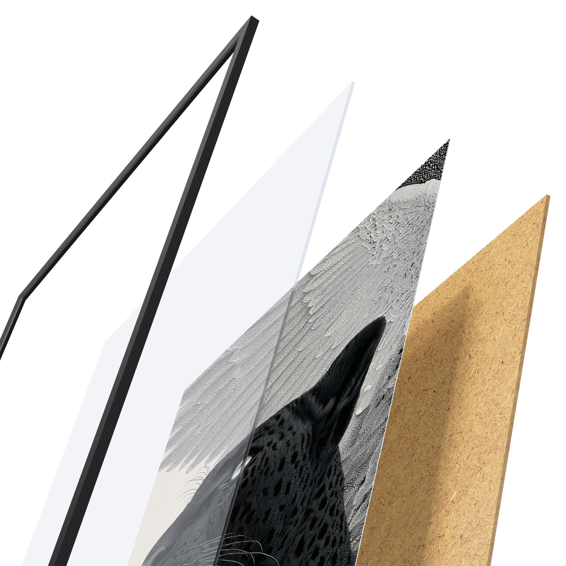 Plakát se skládá z rámu, plexiskla, tištěného obrazu a dřevotřískového podkladu. Díky úchytům na zadní straně lze plakát ihned zavěsit na zeď.