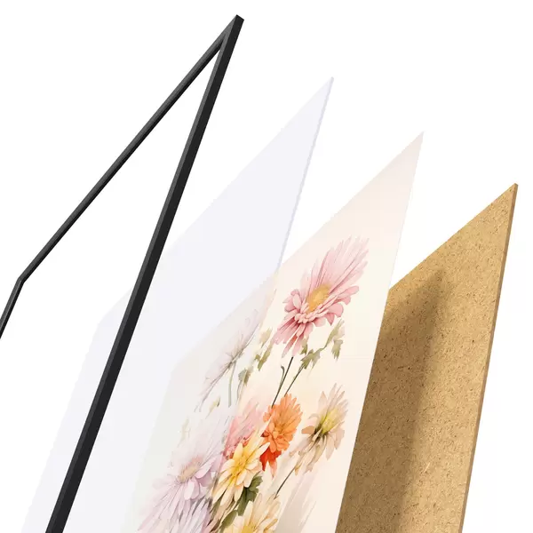Plakát se skládá z rámu, plexiskla, tištěného obrazu a dřevotřískového podkladu. Díky úchytům na zadní straně lze plakát ihned zavěsit na zeď.